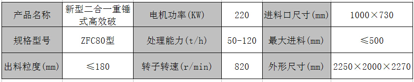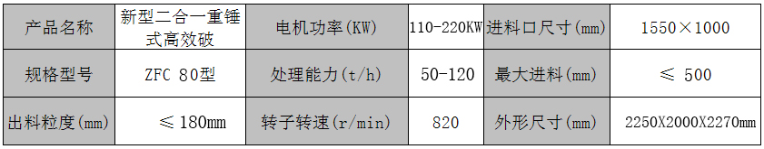 ZFC80型新型高效節(jié)能型二合一破碎機術參數: